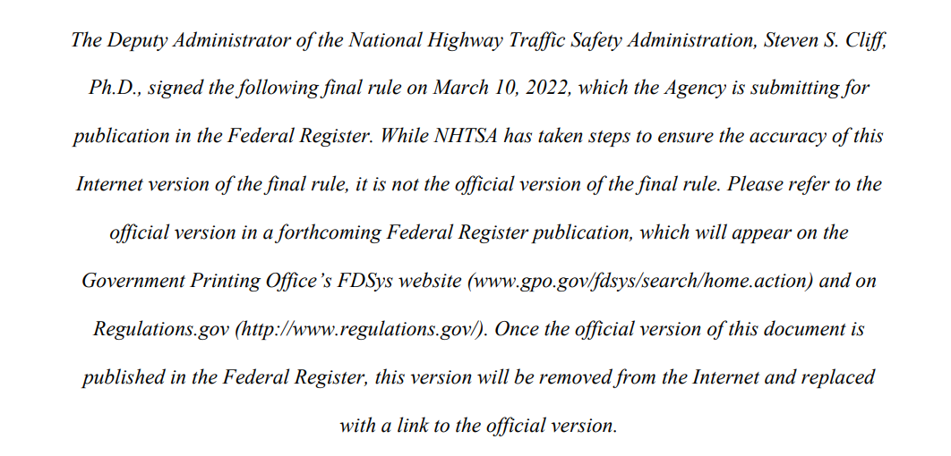 NHTSA 新规完整版链接:https://www.nhtsa.gov/sites/nhtsa.gov/files/2022-03/Final-Rule-Occupant-Protection-Amendment-Automated-Vehicles.pdf