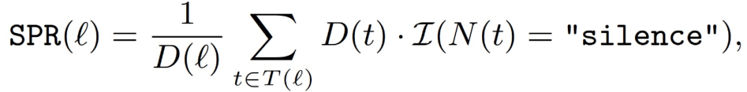 沉默期率(Silence Period Rate,SPR),它是使用视频记录中表示沉默的特殊标记计算出来的。具体而言,SPR 计算如下: