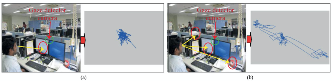 图 4. 注视模式:(a)与任务或场景相关的观察;(b) 自发观看。