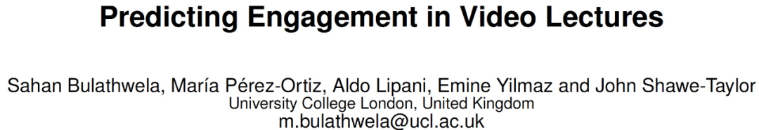 本文谈到的注意力也与上文不同,本文关注的是公开的教育资源(Open Educational Resources ,OERs))在线学习过程中学习者观看课程的注意力集中的程度。这里,「人机交互」指的是学员(人)与机器播放的课程(机)之间的交互情况。在在线学习场景中,一般认为能够使得学习者高度集中注意力的课程,是更为适合该学习者的课程。经典的 OERs 问题更关注个体用户(学习者)的参与度,而本文的目标是建立模型以找到情景无关的(即基于人群的)参与度特征,这是一个很少研究的问题。