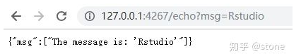此时,在浏览器输入127.0.0.1:4267/echo?,(get请求可以直接浏览器调用,ip:port之后输入你想要调用的函数名字echo,?后接para1=xxx¶2=xxx·······)会立即返回如下的json结果(注意端口号要一致):