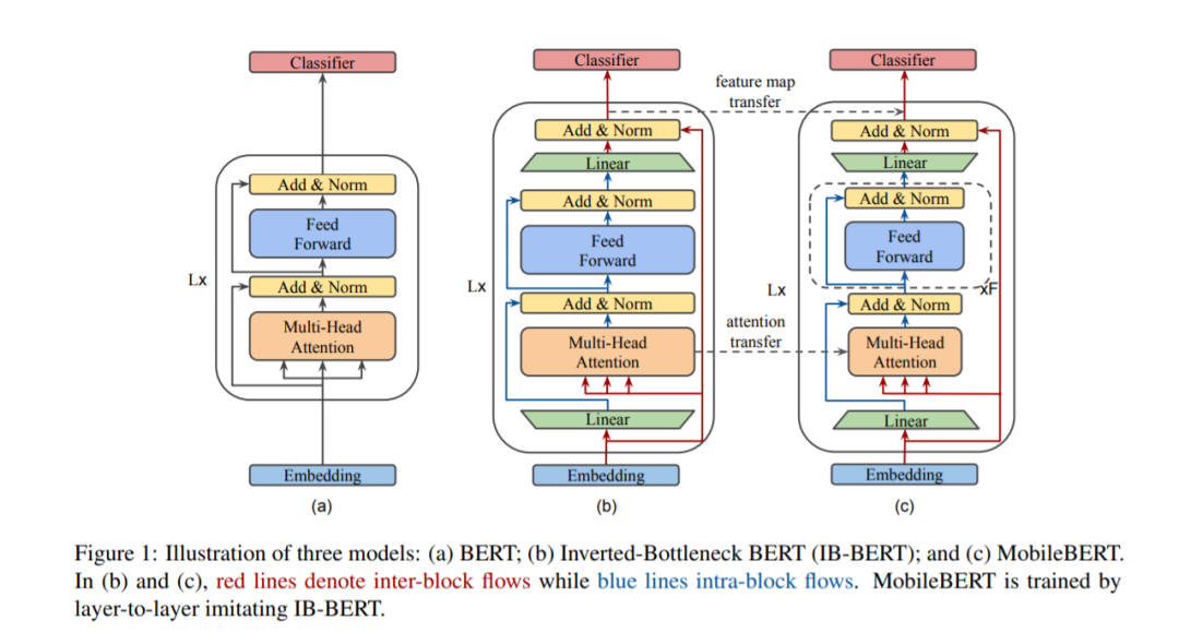自然语言处理(NLP)最近取得了巨大的成功,它使用了带有数亿个参数的巨大的预先训练的模型。然而,这些模型存在模型大小过大和延迟时间长等问题,因此无法部署到资源有限的移动设备上。在本文中,我们提出了压缩和加速流行的BERT模型的MobileBERT。与最初的BERT一样,MobileBERT是与任务无关的,也就是说,它可以通过简单的微调应用于各种下游NLP任务。基本上,MobileBERT是BERT_LARGE的瘦版,同时配备了瓶颈结构和精心设计的自关注和前馈网络之间的平衡。为了训练MobileBERT,我们首先训练一个特别设计的教师模型,一个倒瓶颈合并BERT_LARGE模型。然后,我们把这个老师的知识传递给MobileBERT。实证研究表明,MobileBERT比BERT_BASE小4.3倍,快5.5倍,同时在著名的基准上取得了有竞争力的结果。在GLUE的自然语言推断任务中,MobileBERT实现了GLUEscore o 77.7(比BERT_BASE低0.6),在Pixel 4手机上实现了62毫秒的延迟。在team v1.1/v2.0的问题回答任务中,MobileBERT获得了dev F1的90.0/79.2分(比BERT_BASE高1.5/2.1分)。