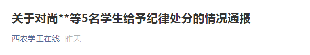 学校表示为严肃校纪,教育本人,根据《西北农林科技大学学生违纪处分规定》相关条款,经2021年9月23日学校学生违纪处理工作委员会研究,