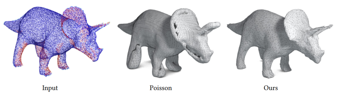 使用平滑 prior 从有缺失区域的点云中重构完整的网格,该方法会忽略整体形状特征。