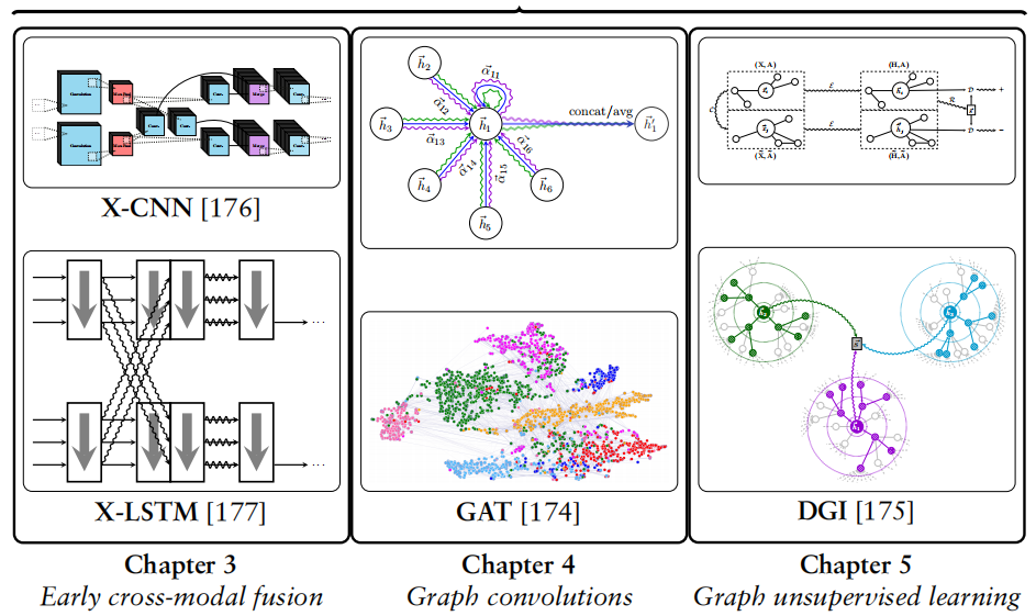 本篇博士论文的主要贡献:早期跨模态融合、图卷积和图无监督学习。