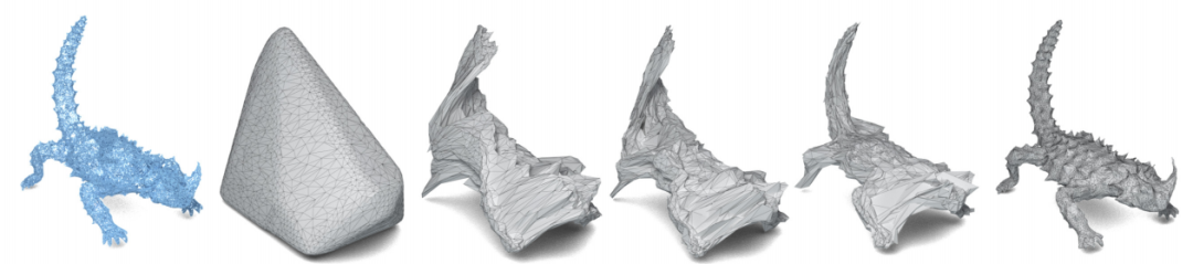 该方法从单个对象学习,通过优化卷积神经网络(CNN)的权重来使一些初始网格变形,以收缩包覆输入点云。