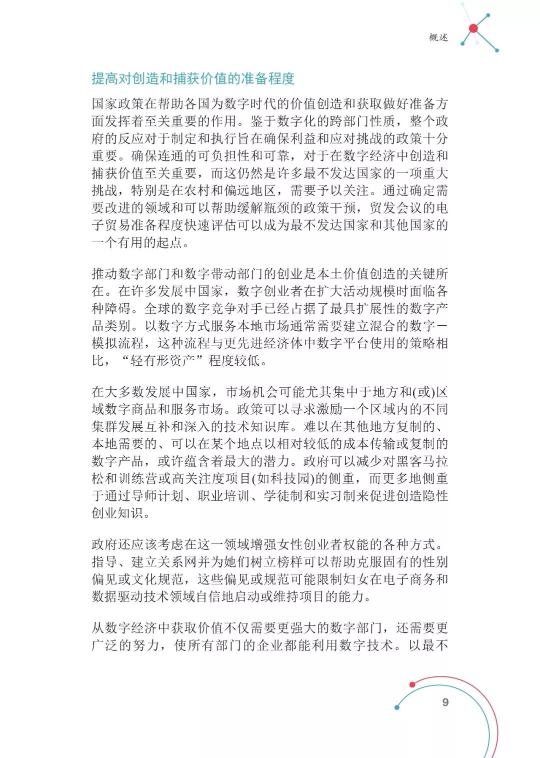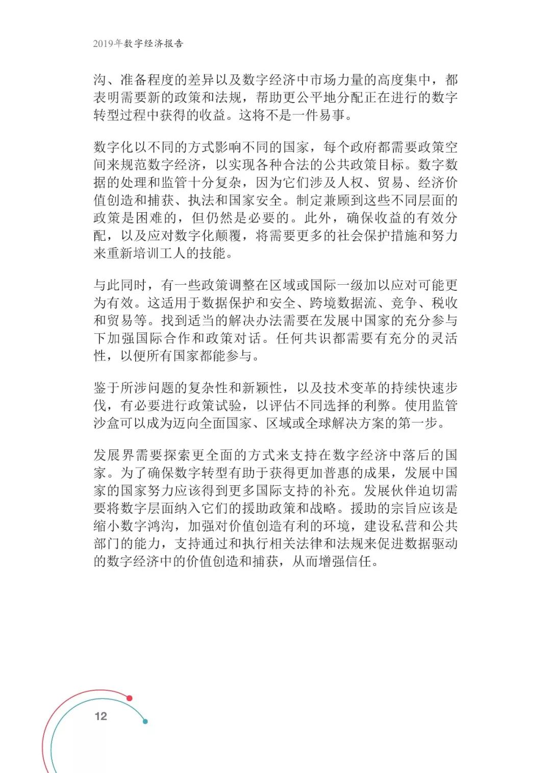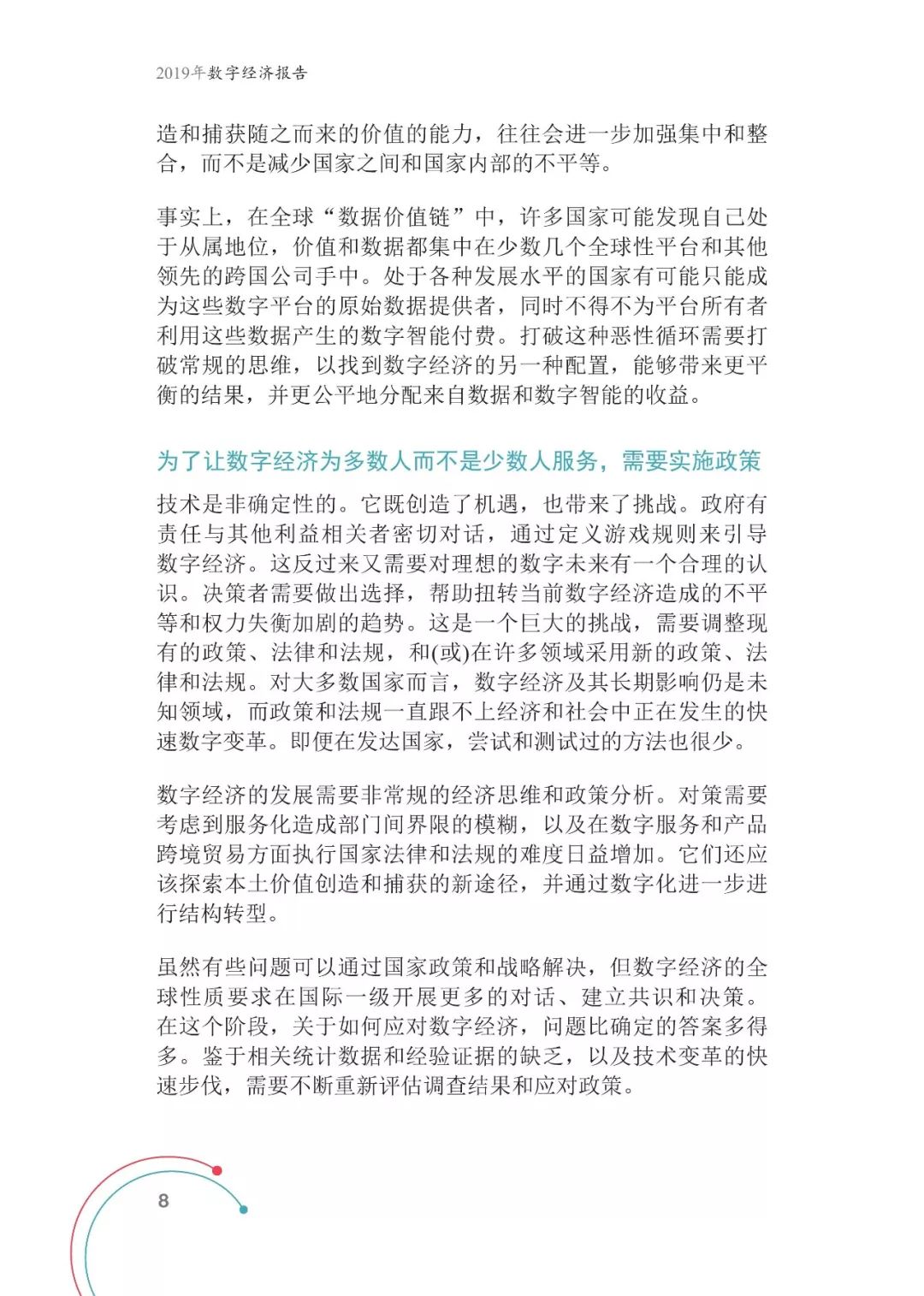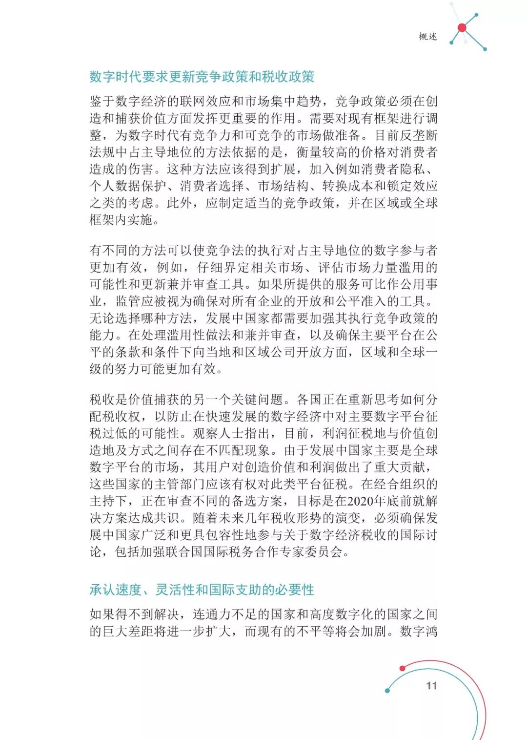 报告强调,只有广大发展中国家充分参与,才能在区域和国际层面有效解决数字经济中的竞争、税收、跨境数据流、知识产权、贸易和就业政策等问题。