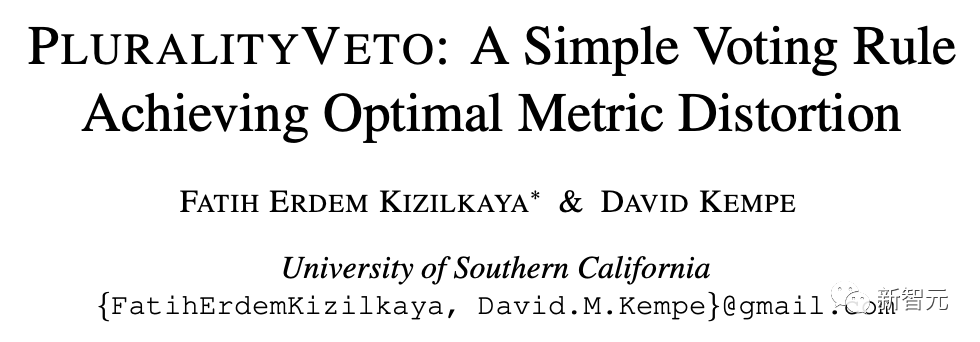 我们的主要结果是一个非常简单的投票规则,被称为PLURALITY VETO,它实现了最佳失真3。