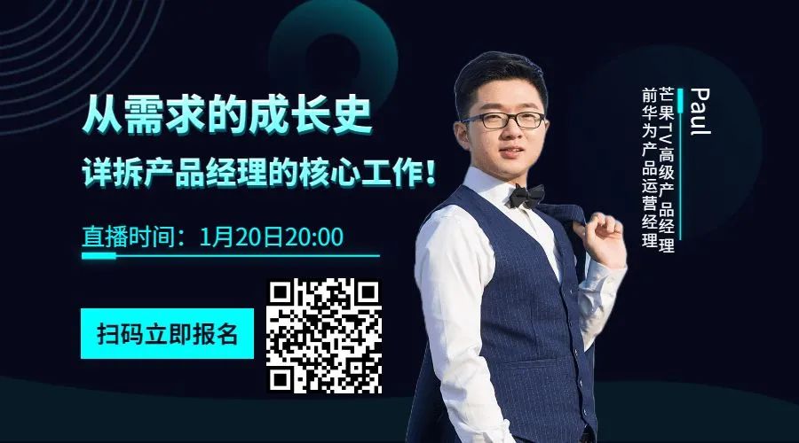 1月20日本周四晚8:00,芒果TV高级产品经理、前华为产品运营经理@ Paul,做客“起点课堂产品经理入门公开课”,1小时带你掌握产品经理的核心能力!畅聊需求的成长史!