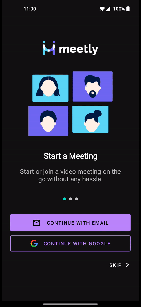 Meetly 可能是本年度评选出的三款年度设计应用中相对最让人感到陌生的一款:这是一个免费的视频会议 App,于 2020 年五月发布,本身在功能性上并无太多亮点;也不是什么爆款应用:直到本文发文时在 Play Store 中也只有 3.7 的评分。