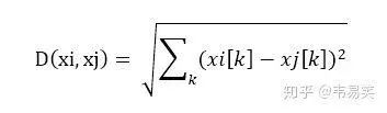 kNN 中最关键的一步就是求距离 d(xi, xj),这个距离有很多种求法,比如传统欧氏距离: