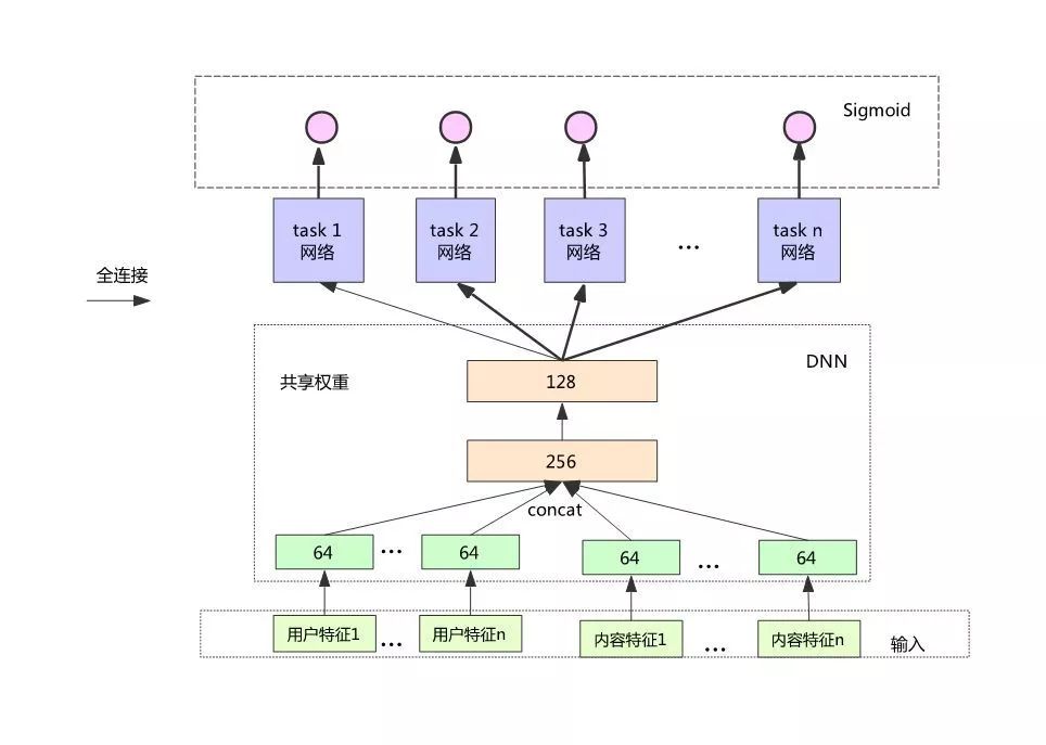 从性能方面的考虑,我们将底层权重设置成共享的,最后一层会根据不同的目标进行权重的训练。