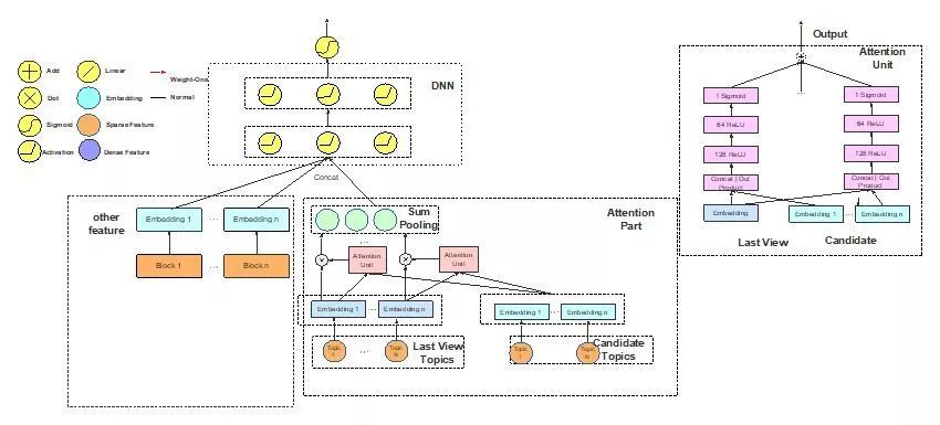 我们基于的考虑是用户过去点击的内容肯定对他2将要点击的内容产生动态影响,这个模型参考了阿里的DIN模型,它会把用户看过的东西Embedding,然后根据Attention Score再乘起来,我们的做法有所不同,我们是基于Topic,是过去用户看过那些Topic下的内容进行划分。