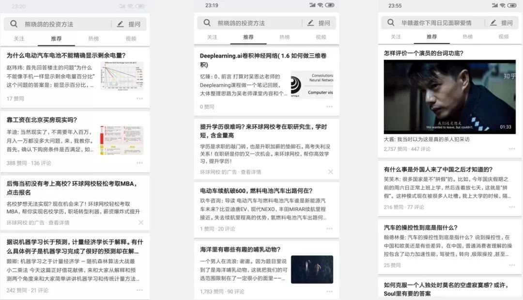 首先大家看一下知乎APP的推荐页的推荐结果,由于单厚智老师对机器学习比较感兴趣,所以推荐内容大部分和机器学习相关。