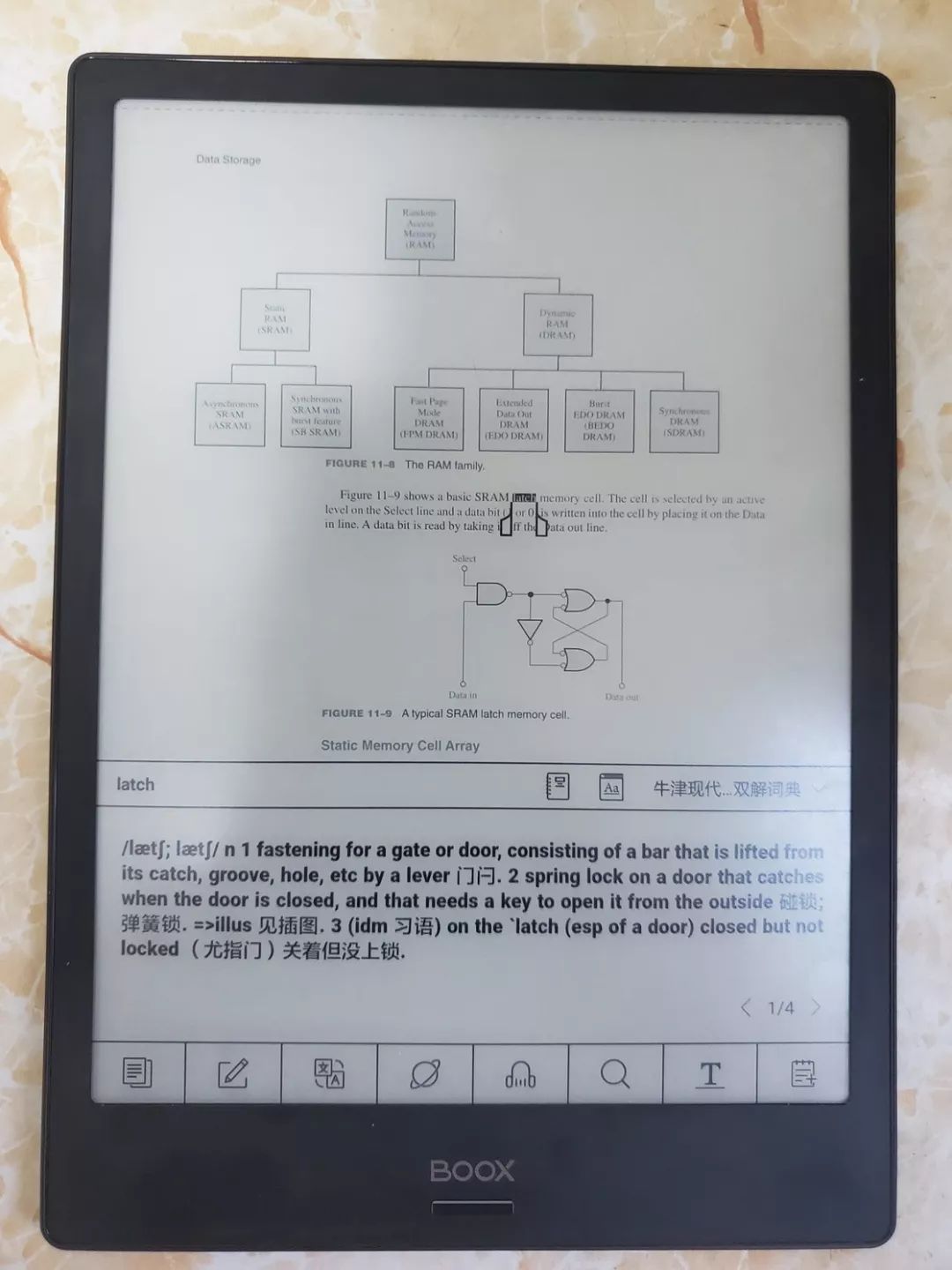 读文档时,当然要顺手记录所思所想,而文石 BOOX Note 在这方面也做得十分到位。你可以拿起电磁笔,直接在书上圈点段落、绘制形状;也可以长按文字,设置高亮、划线等标注格式,在一处便捷管理,并将标注内嵌在文件内一并导出。此外,文石 BOOX Note 还支持对选中的文字快速查询词典、调用在线翻译、使用浏览器搜索等动作,功能全面。