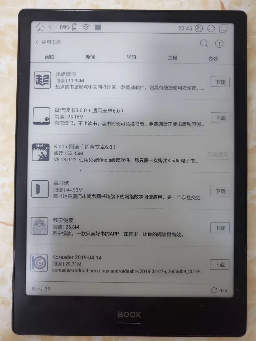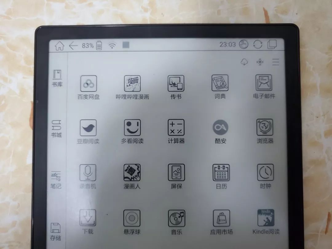 由于采用的是定制版 Android 系统,文石 BOOX Note 支持安装第三方 App。在其自带的应用商店中,已经提供了多看、豆瓣、微信、掌阅、Kindle 等众多主流阅读 App,均针对电子墨水屏进行了优化。不过,这些 App 基本都不是最新版本,想紧跟时代,只能自己从官网安装了。