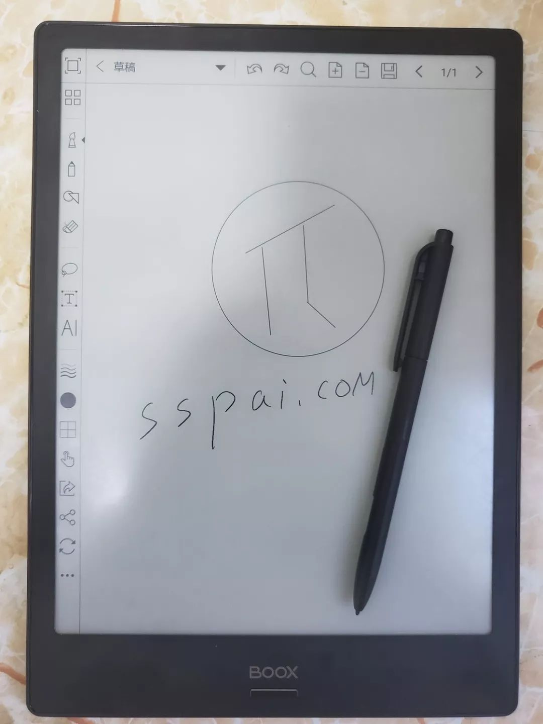 尽管电子墨水屏仅有黑白两色,但文石 BOOX Note 却配备了一支 Wacom 电磁笔,并支持 4096 级压感和五种笔迹色彩(虽然看不出来)。如果你是一名大触,可以试试用其内置的笔记应用勾勒骨架,之后再连接电脑上色,当作一块数位屏使用。