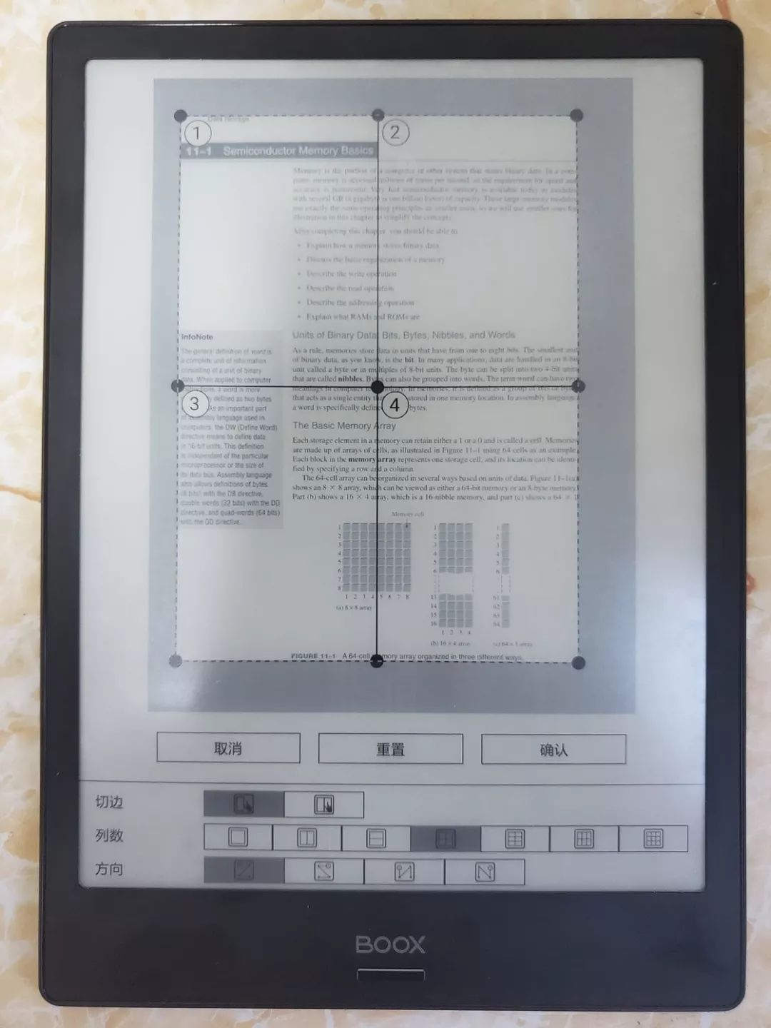 除了阅读漫画外,我购买文石 BOOX Note 最重要的原因就是为了浏览和批注 PDF 文档了,而在实际体验中,它也没有令我失望。由于大部分 PDF 都采用 A4 尺寸,文石特别开发了 PDF 一键裁边功能,将文档四周的留白删除,只保留文档主体,不浪费屏幕空间。