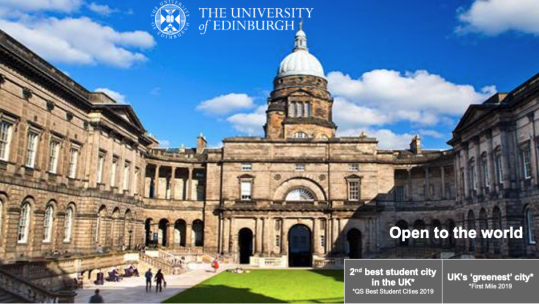 爱丁堡大学(The University of Edinburgh)简称爱大(Edin.),坐落于苏格兰首府爱丁堡市,是一所成立于 1583 年的公立研究型大学。爱丁堡大学是英语世界最古老的市立机构,现存第六古老的大学、苏格兰四所古典大学之一。爱丁堡大学在 2021 年英国政府的研究卓越框架中,其研究实力位居英国第 4 位,仅次于牛津大学、伦敦大学学院和剑桥大学。在 2022 年发布的 QS 世界大学排名和泰晤士高等教育世界大学排名中,爱大分别位列世界第 15 和第 29 位。