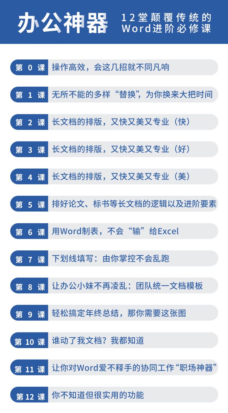 用12堂视频大课,讲透60个痛点,解决9成Word应用难题。帮你轻松应对毕业论文、合同方案、标书、商业计划书等等场景,成为“行走的Word操作说明书”。