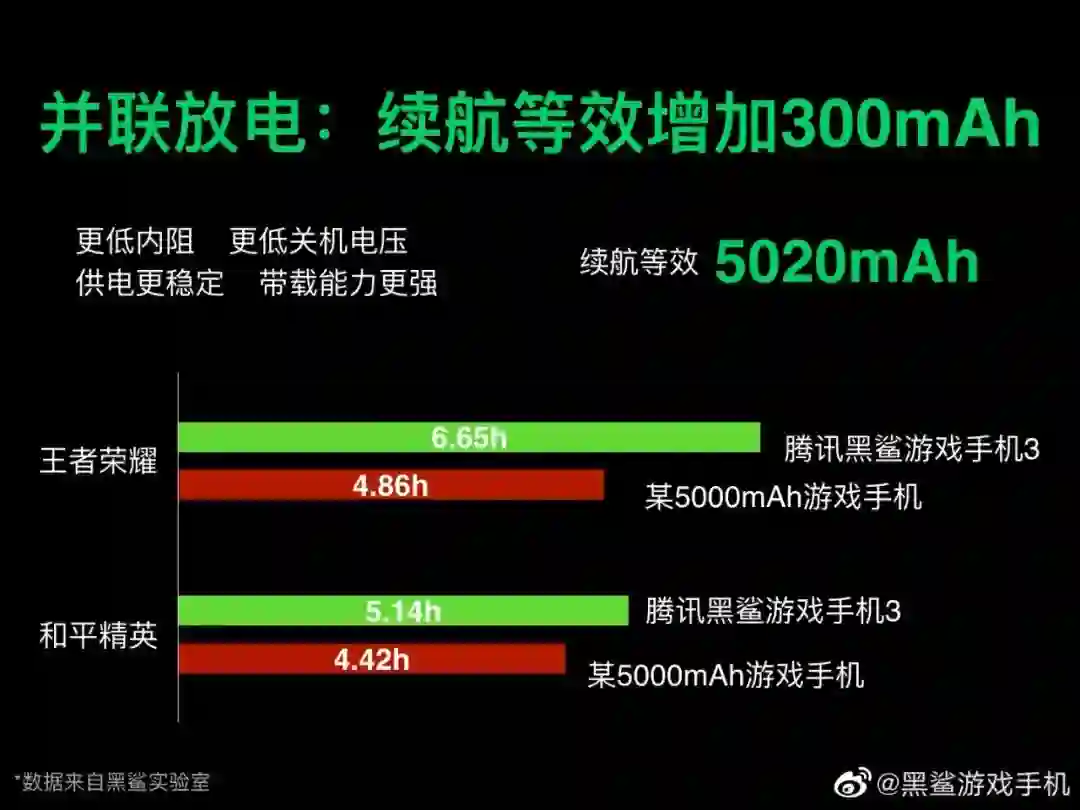 其中后两点加在一起,大概是黑鲨官方称续航等效增加的理论来源。