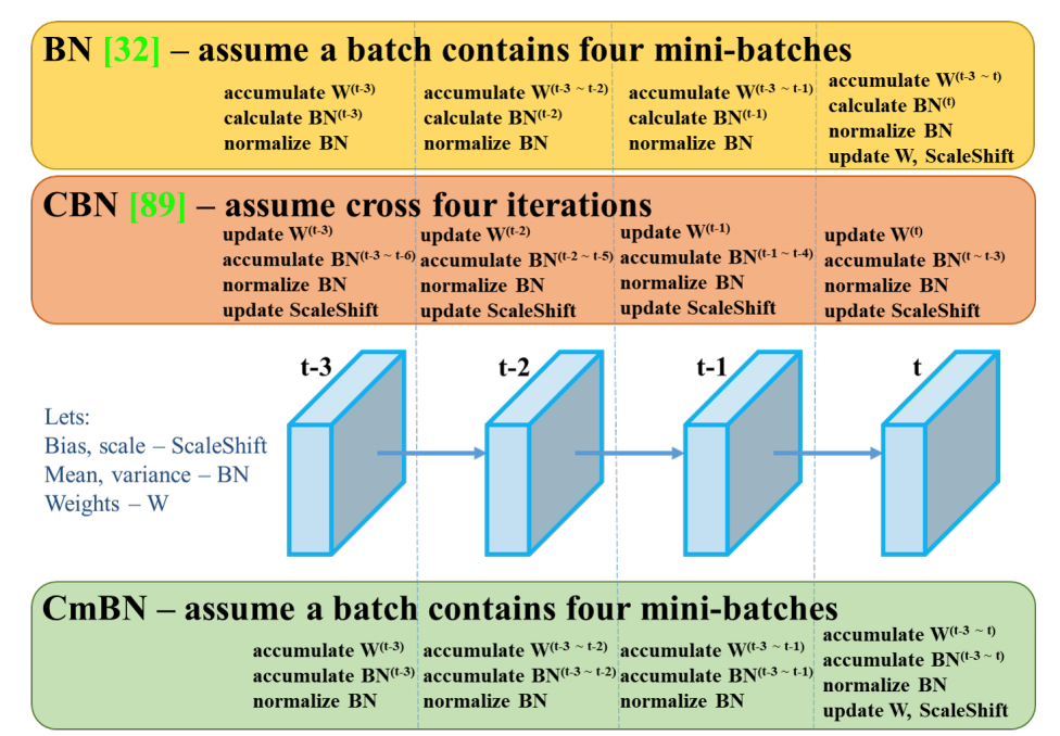 CmBN 是 CBN 的改进版,它仅收集单个批次内 mini-batch 之间的统计数据。