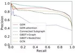 下面,我们比较了这些方法在 Precision-Recall 曲线上的表现。从图中可以看出,GEM 可以在召回的头部到尾部,都保持相对一致的高准确度。这使得我们的方法可以在避免打扰正常账户的同时,有效打击黑产账户。