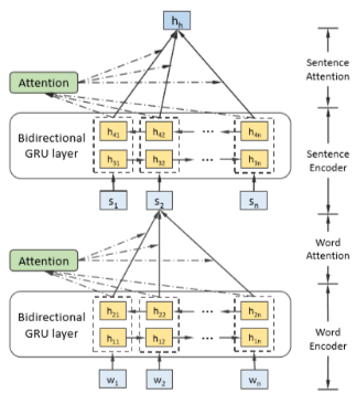 丨采用分层注意力网络建模在线文章的长文本内容,这出于对文档的固有层次结构(即单词形成句子和句子形成文档)的考虑,将文档依次编码为单词级和句子级的注意力向量,有益于得到更优的文本语义表示。