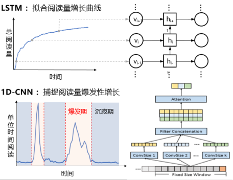 丨采用带有注意力机制的CNN建模单位时间内流行度的突发性波动,有两个优点:a)CNN擅长于捕捉具有平移不变性的局部结构,而流行度“上升”和“下降”的短期波动恰好具有这种特性。b) 注意力机制能够使模型更多地关注受到外部因素影响的时间点。