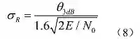 其中,E/N_0 为信噪比。可以看出:雷达的测距精度与信号带宽和信噪比成反比。