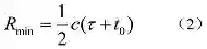最小可测距离是指雷达能测量的最近目标距离。对于脉冲雷达来说,收发天线是共用的,在发射脉冲宽度 τ 的时间内,接收机无法接收目标回波,在发射脉冲结束后将天线收发开关转换到接收状态也需要一定的时间 t_0,接收机也不能接收目标回波。因此,雷达的最小可测距离为: