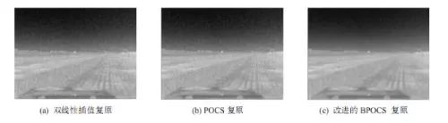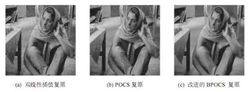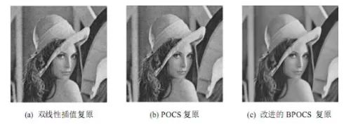 (1)针对传统 POCS 复原方法对噪声比较敏感的问题,将目前去噪效果较好的 BM3D 滤波方法和 POCS 复原方法相结合,对 BM3D 方法进行优化,提出了使用图像块的均值预筛选和限制分组图像块数目的方法,降低了 BM3D 方法的运算量。实验表明,基于 BM3D 的 POCS 超分辨率复原算法能够在低分辨率图像包含噪声时,取得比传统 POCS 方法更好的复原效果,复原的高分辨率图像主观上基本看不出噪声。