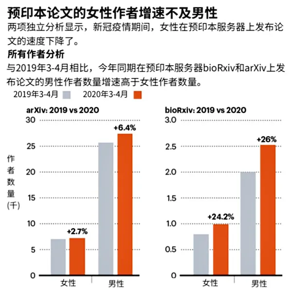 朱小燕认为,这和科研工作本身的性质有关。科研需要长时间不间断、沉浸式思考,在疫情期间女性受到家庭的干扰比男性更多,不能做到像办公室里的百分之百投入。相比之下,男性的影响更小,甚至节约了很多社交时间。 杨尔弘从女性的传统社会角色和家庭角色分析,认为疫情使得女性承担的家庭事务性工作骤增,包括家务、一日三餐、孩子在家需要照料,在内需要安排妥善家人的生活,在外受到各种信息的冲击,缺乏团队集聚、集中、安静的环境。杨红霞则补充道,work from home 的工作模式使得员工心态发生变化,工作重心转移到家庭,这对女性工作者的影响尤为明显。当然,需要严格检验问题中的差异化假设是否为 statistically significant 再下定论。