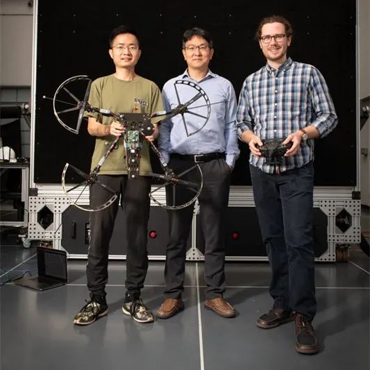 下图从左到右依次为石冠亚、Soon-Jo Chung 和 Michael O'Connell 。值得祝贺的是,石冠亚将在 2023 年 9 月入职卡内基梅隆大学计算机学院机器人研究所担任助理教授。