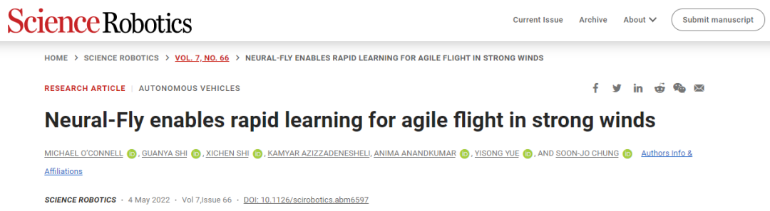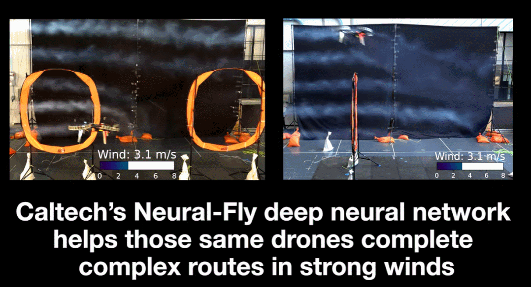 为了让无人机在风中飞行时具有更好的机动性,来自加州理工学院的一组工程师开发了一种深度神经网络 Neural-Fly,即一种人工智能工具,可以让无人机在有风的情况下保持敏捷,只需更新一些关键参数,即可帮助无人机实时应对新的和未知的风况。