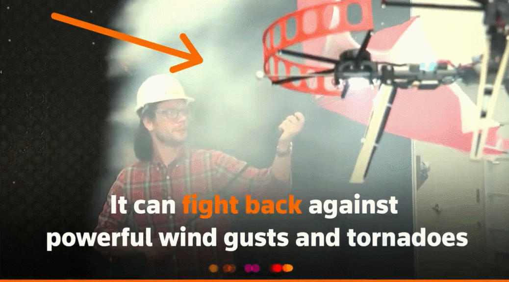 当风大到可以把伞吹坏的程度,无人机却稳稳当当,就像这样: