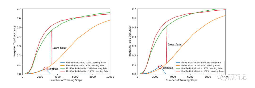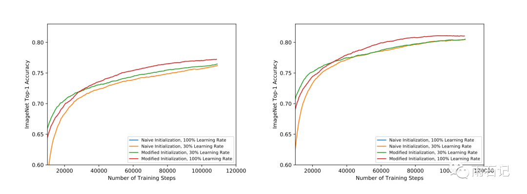 同样的,如果关注模型最后的结果,如下图,可见,使用新的初始化方法+原来的学习率,可以学的更快更好。