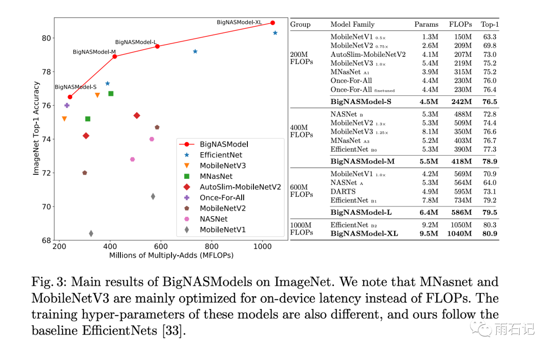 得到的结果如下,可以看到,在每个参数量级上,BigNAS都能得到最好的结果。
