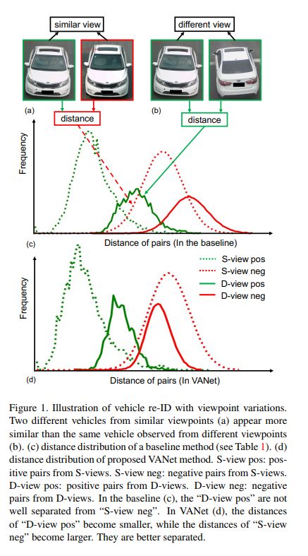在车辆重识别任务中,极端的视角变化(变化视角可达180度)给现有的方法带来了巨大挑战。受到人类识别车辆时认知方式的启发,我们提出了一种基于视角感知的度量学习方法。该方法针对相似视角和不同视角,分别在两个特征空间学习两种度量标准,由此产生了视角感知网络(VANet)。在训练过程,我们施加了两种约束进行联合训练。在测试过程,我们首先估计车辆的视角,并基于估计结果采用对应的度量方式进行度量。实验结果证实了VANet能够显著地提高车辆重识别的准确度,在识别拍摄视角不同的车辆对时效果更为明显。我们的方法在两个基准数据集上都实现了目前最好的结果。