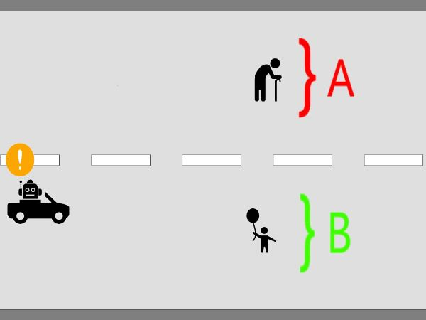 在第一个实验中,研究人员向 529 名人类受试者展示了驾驶员可能面临的道德困境。在研究人员创建的场景中,汽车驾驶员必须决定是将汽车撞向一群人还是另一群人,而且碰撞是不可避免的。也就是说,事故将对一组人造成严重伤害,但会挽救另一组人的生命。