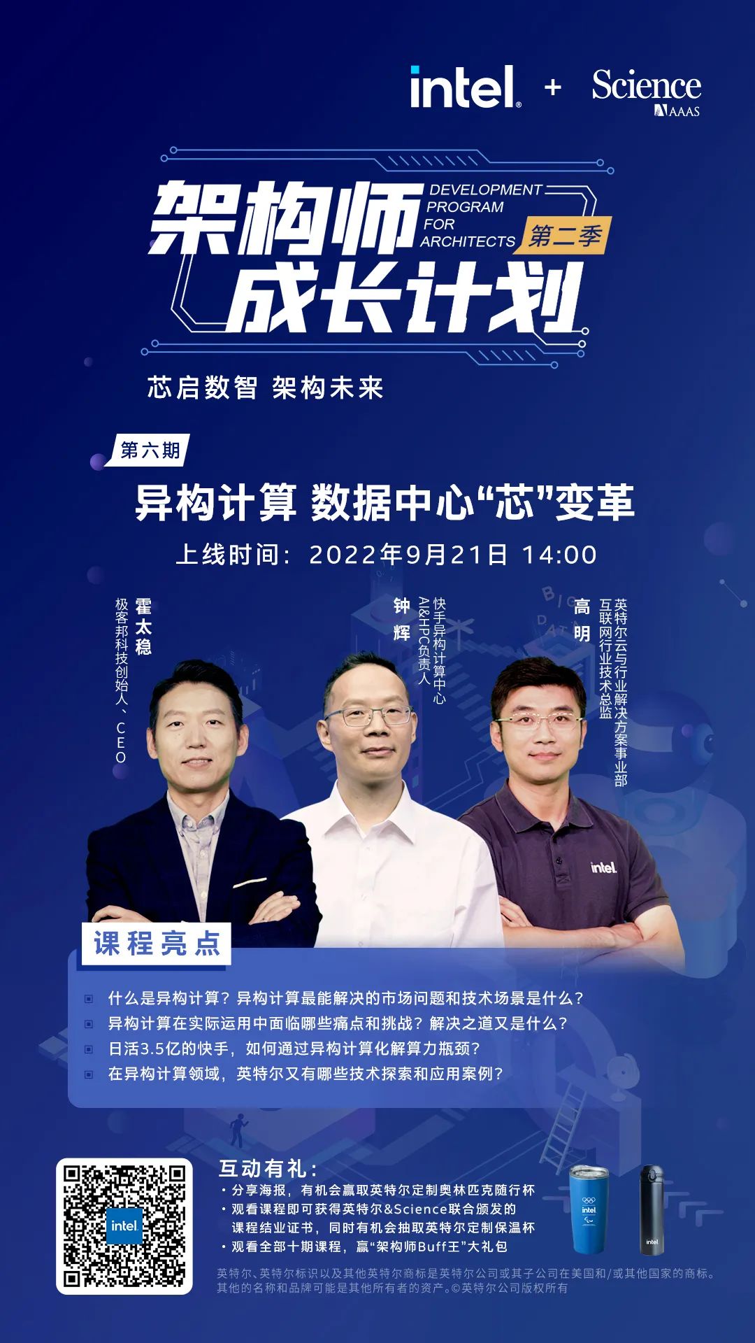 扫描下方海报二维码,预约收看英特尔联合国际学术期刊《科学》共同推出的“架构师成长计划”第六期《异构计算 数据中心“芯”变革》,9 月 21 日 14:00精彩上线!