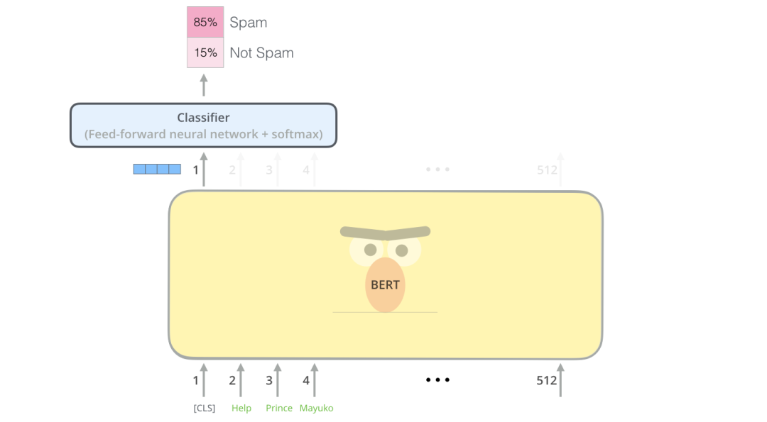 使用 BERT 这类模型,将预训练语言模型扩展到监督任务的方法是在句子的 <CLS>(或 <s>)词条的输出上添加一个全连接网络,然后在全连接网络中,对某些分类任务的模型进行微调(如下图所示)。由此得出的自然特征向量可作为 Softmax 层之前的输出。