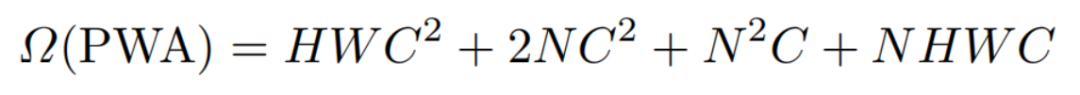 由于Window Token总结了本地窗口的全局信息,因此所提出的PWA有助于在窗口级而不是像素级上有效地执行窗口之间的信息交换。具体地说,PWA的复杂性如下: