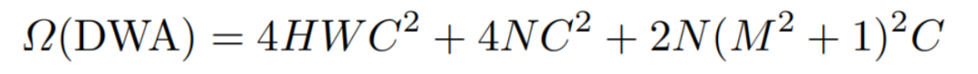 在基于Window的Self-Attention的基础上,DWA具有类似的计算成本。此外,Window Token的引入将会导致额外的成本,但与DWA的总成本相比,这一点可以忽略不计。DWA的复杂度计算方法如下: