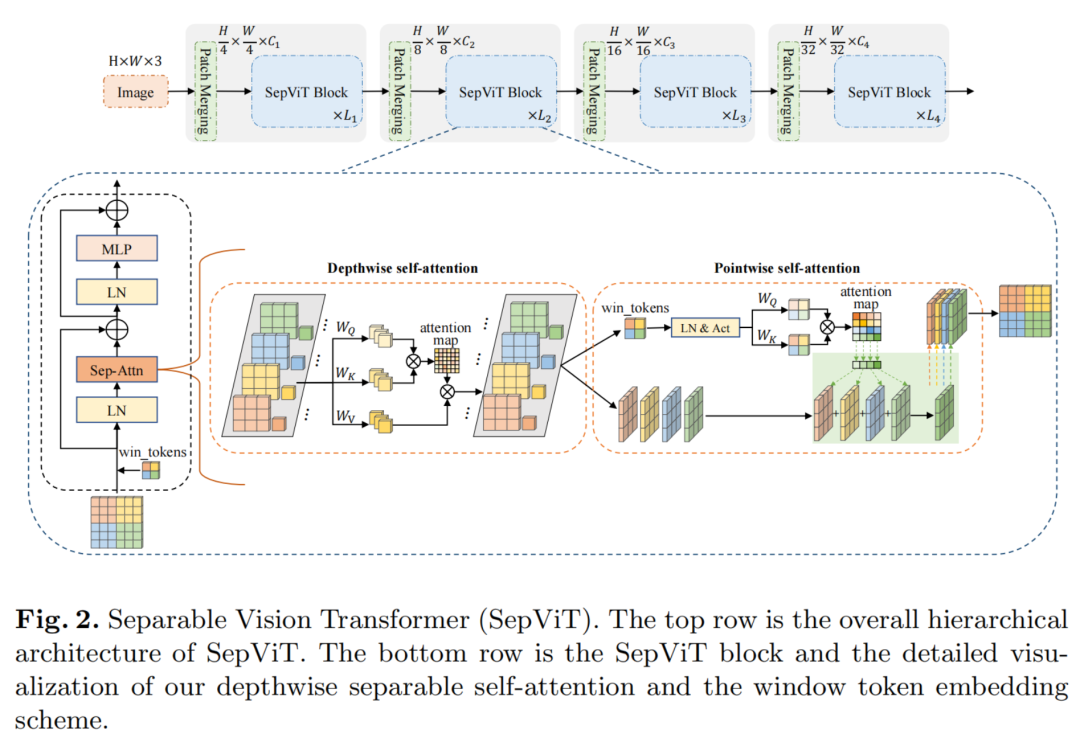 如图2所示,SepViT遵循了广泛使用的层次体系结构和基于Window的Self-Attention。