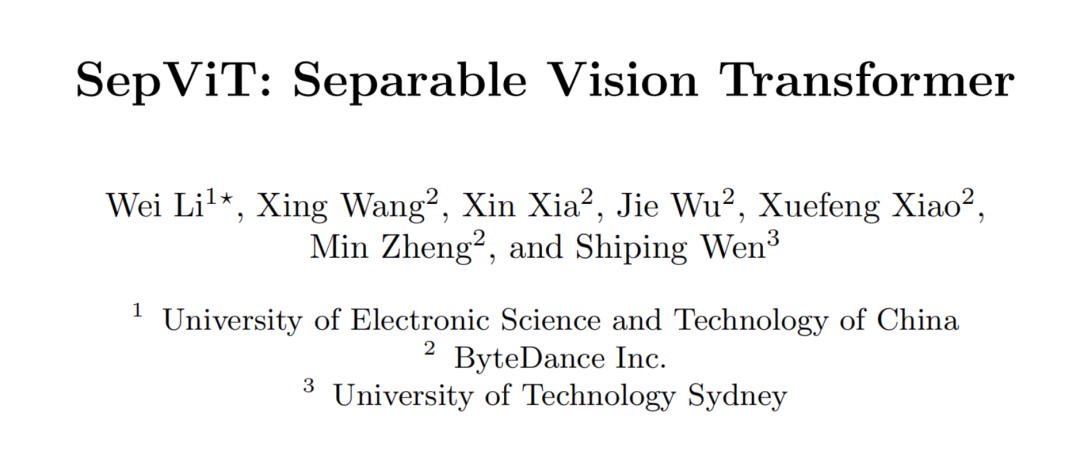 为了解决这些问题,作者受深度可分离卷积启发设计了深度可分离Vision Transformers,缩写为SepViT。SepViT通过一个深度可分离Self-Attention促进Window内部和Window之间的信息交互。并群欣设计了新的Window Token Embedding和分组Self-Attention方法,分别对计算成本可忽略的Window之间的注意力关系进行建模,并捕获多个Window的长期视觉依赖关系。