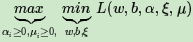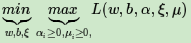 我们可以先求优化函数对于w,b,ξ的极小值, 接着再求拉格朗日乘子α和 μ的极大值。