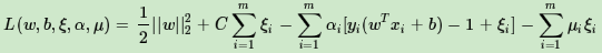 和线性可分SVM的优化方式类似,我们首先将软间隔最大化的约束问题用拉格朗日函数转化为无约束问题如下: