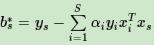 4) 找出所有的S个支持向量,即满足对应的样本,计算偏置项b