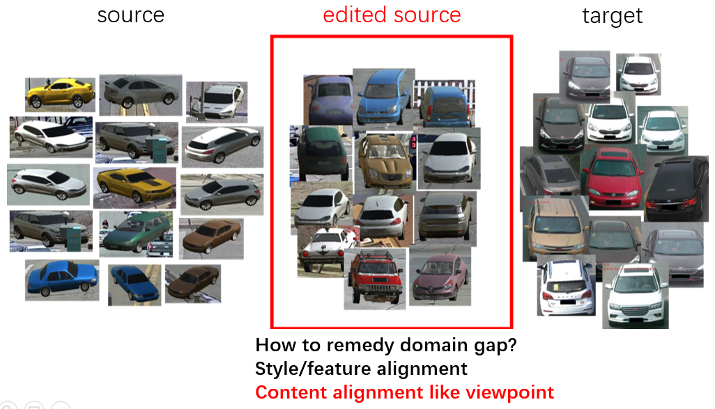 所以我们主要去研究内容层面上的domain gap(content level domain adaptation)。在vehicle re-ID任务中,内容被定义为车辆朝向,相机高度,光照强度等。因为这些内容因素会对re-ID模型的性能造成很大影响。